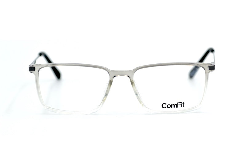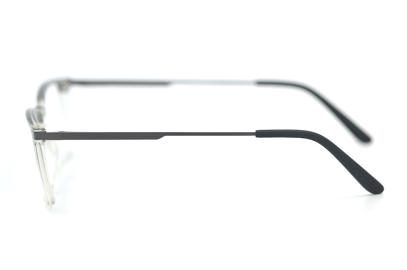 Elmer ComFit retro style glasses. This super comfortable frame is lightweight and features a pale grey acetate front with dark grey sides. The frames feature sprung hinges. New unused stock.