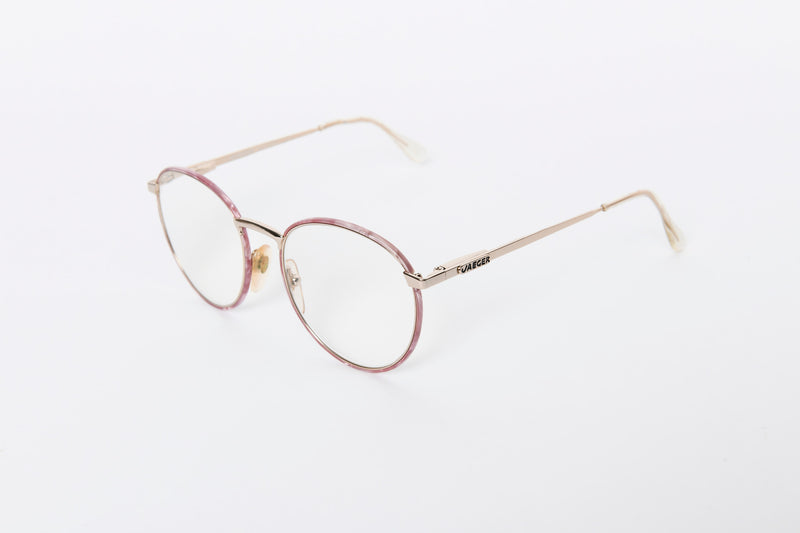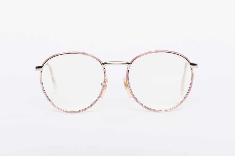 Womens, purple pearlescent rounded metal frame, very pretty colouring with gold metal arms and subtle name branding by hinge. 52/18 135. Small/Medium.