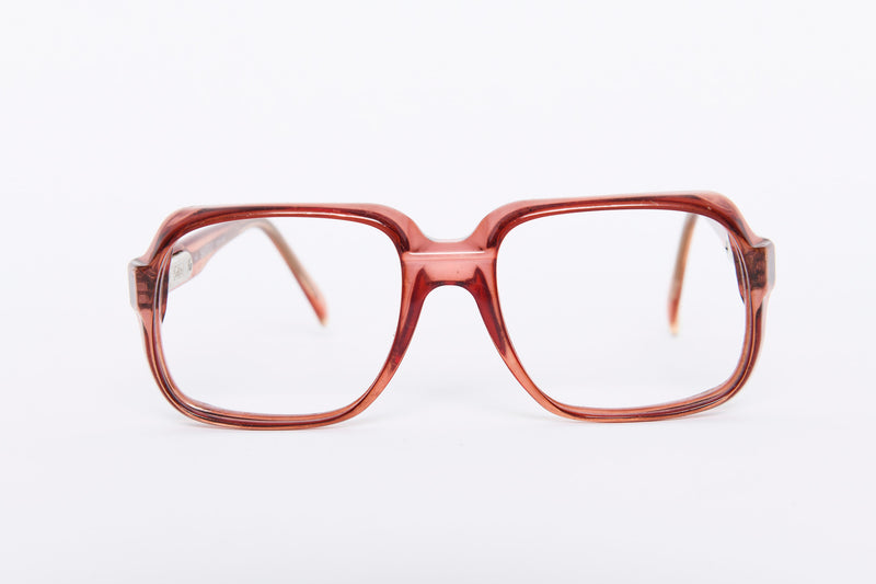 A beautiful, thick, squared frame in a translucent light orange/red, with gold hinge by ‘Safilo’.