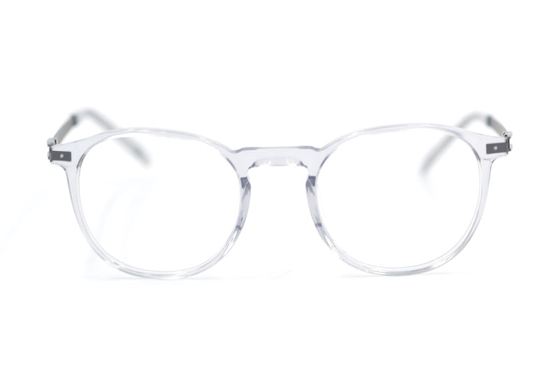 Tech Specs 03 unisex retro inspired glasses. Super lightweight design, very comfortable. Crystal acetate front with black metal sides and a key-hole bridge. New unused stock saved from landfill.
