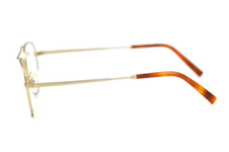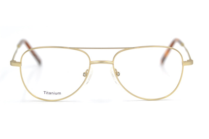 Titan aviator glasses in matte gold. New unused stock saved from landfill. This stylish unisex frame is light weight and hypoallergenic due to the titanium material. The double bridge adds extra strength and a sense of style. Sustainable eyewear online at Retrospecced.