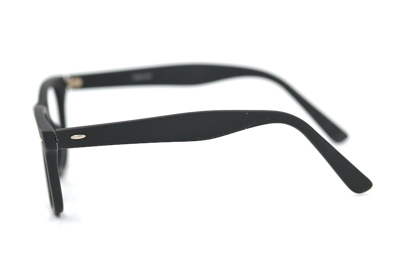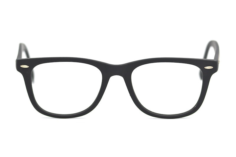 The Wayfarer is a timeless classic retro style frame, in matte black. This unisex frame has a rubberised finish and silver rivet detail to the front and temporal sides. This would look great as retro glasses or sunglasses. Fabulous refurbished condition with very little sign of wear.